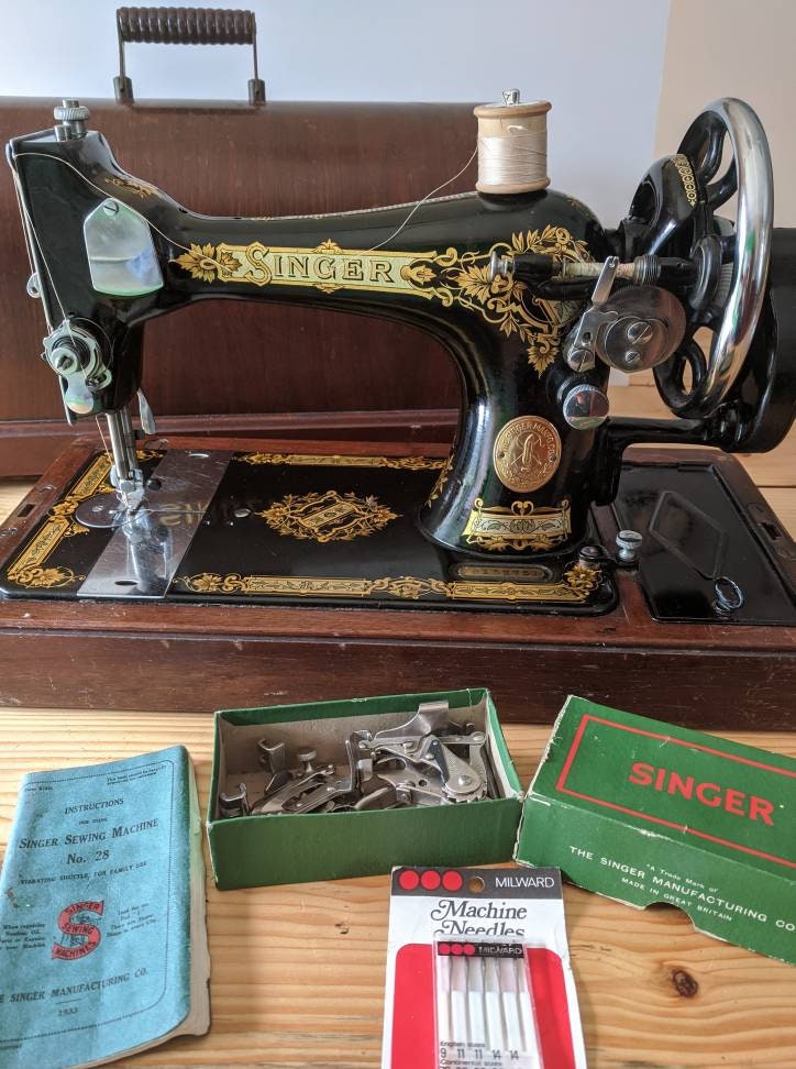 1933 Singer Sewing Machine Model 28k In Original Wooden Case Etsy Uk
